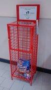 ist eine Spendengitterbox für Futterspenden aufgestellt.